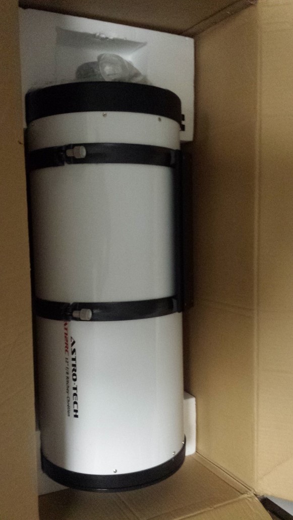 Telescope Ritchie-Crieten Astro Tech AT12RC - 12 inch Ritchey-Chrétien astrograph (Metal Tube), f/8, Focal Length 2432mm, 2in Focuser, 49.3 Lbs, Losmandy Dovetail mount (no mount available) 12 inch ATRC with focuser(?), Steel Tube, 49.3 Lbs. Available - Needs Evaluation