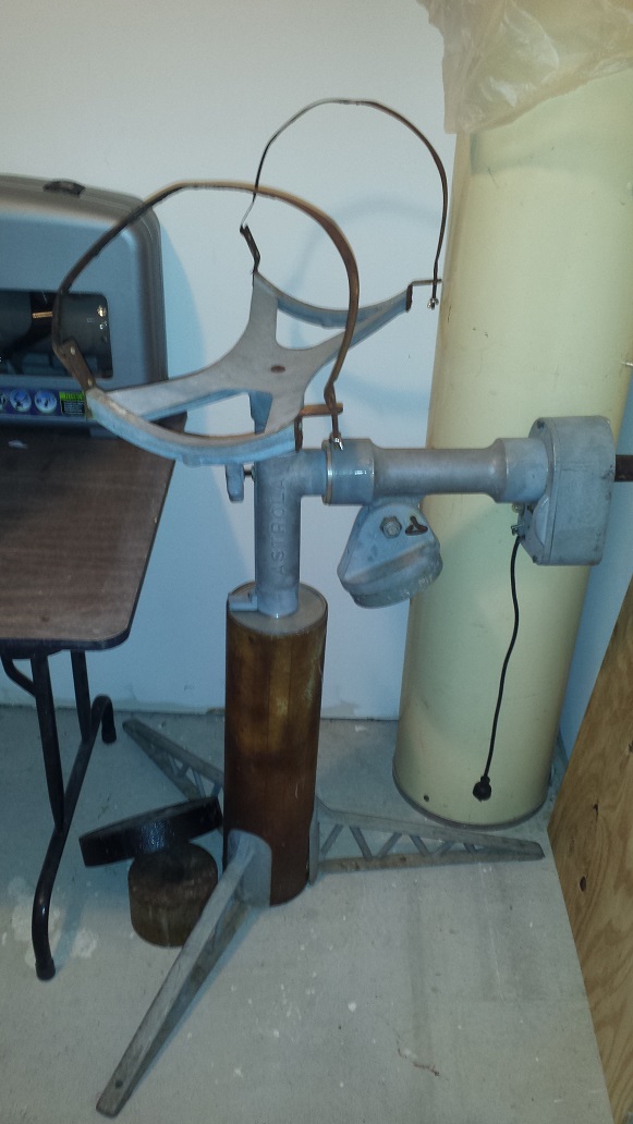 Mount German Equitorial Astrola German Equitorial Mount for 12 inch Newtonian German Equtorial Mount for 12 inch Newtonian donated by Wayne Wyrick - Rough Shape! Unavailable - Needs repairs