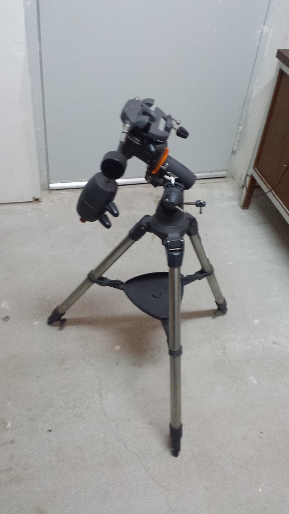 Mount German Equitorial Celestron lightweight equitorial mount on tripod. For 130mm Celestron Mak/Cas Silver legs, black head and counterweights. CG-2 Equatorial Available - Needs Evaluation